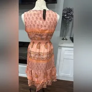 NWT Chaudry KC Size Med 100% Silk Coral Ruffle Floral Knee Length Boho Peasant.