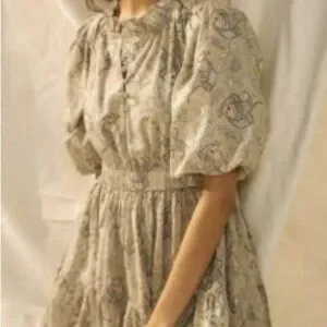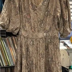 ANTHROPOLOGIE FISH PATTERN DRESS in tan