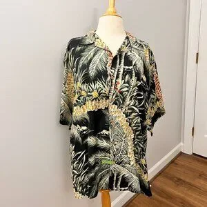 Tommy Bahama 100% Silk Hawaiian Tropic Palm Tree Tropical Camp Shirt Sz L
