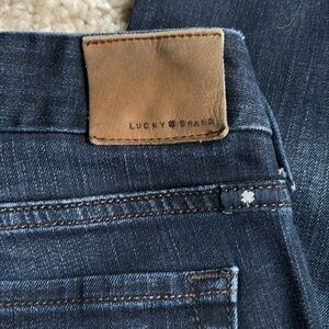 Experience timeless style with these Lucky Brand jeans in a rich blue hue. Crafted from medium-weight denim, they feature a subtle worn-in look with natural fading and whiskering. Perfect for any occasion, these jeans offer a comfortable fit and a versatile addition to your wardrobe.