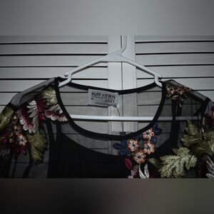 Ruff Hewn NWT Sheer Embroidered Floral Short Sleeve Black/Green/Red Top Size M