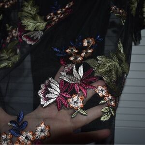 Floral, flower, embroidered, moody, rustic, femme, feminine, sexy, whimsy, moody, pretty, frilly, ruffles, fairy-tale, romantic, sheer, goth, mystical, mysterious, whimsygoth.