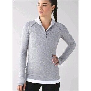 LULULEMON GRAY 1/4 ZIP STRETCHY ZIP POCKETS SWEATSHIRT PULLOVER SIZE 4