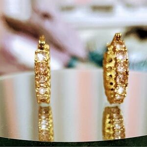 These stunning gold hoop earrings feature sparkling pink stones, perfect for adding a touch of elegance to any outfit. Ideal for both casual and formal occasions.
