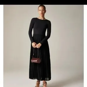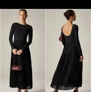 J. Crew Pleated Ballet Maxi Dress Stretch Cotton Long Sleeve Black Medium NWT