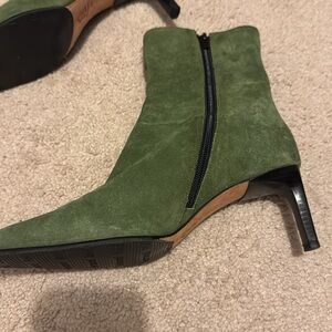 Size 7M Green Suede Booties, NWT