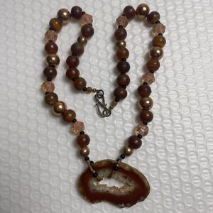 Agate slice geode pendant glass & metal beads handmade necklace jewelry.