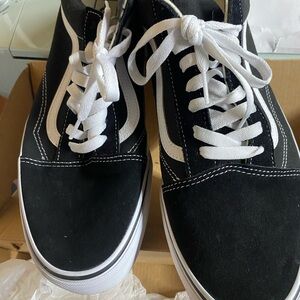 Step into timeless style with these Vans sneakers, featuring a sleek black and white design. Perfect for any casual occasion, these shoes offer both comfort and durability. The iconic Vans look ensures you'll stand out with every step. Never worn