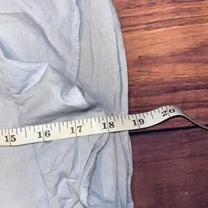 Crafted from light blue cotton , this blouse is breathable and comfortable for warmer days. It boasts stylish ruffled cap sleeves and a playful ruffled hemline, adding to its whimsical appeal. The back has a delicate button closure at the neckline. Perfect for pairing with jeans or shorts for a casual yet chic look!