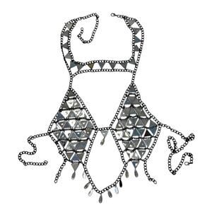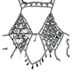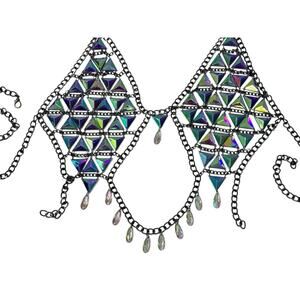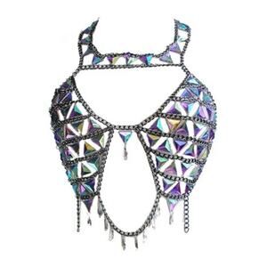 RAVE WONDERLAND DOLLS KILL Iridescent Gem Jewelry Crop Top Crystal Chain Bra