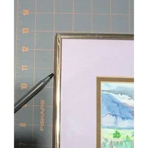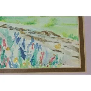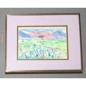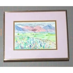 Framed Watercolor Landscape Painting Lavender Mat Rose-Gold Frame signed