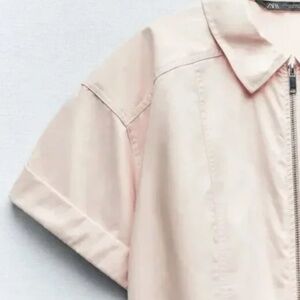 This cream jumpsuit from Zara combines a utilitarian aesthetic with a relaxed fit, featuring a classic collar and wide-leg silhouette. Crafted from durable fabric, it offers a modern take on traditional workwear, ensuring both style and comfort for everyday wear.