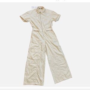 ZARA Women's Cargo Jumpsuit in Ecru; Size S/Small.