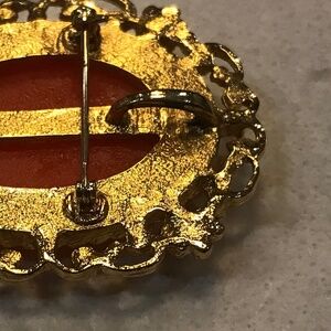 Unique mother and child cameo brooch and pendant signed by Sarah Coventry. Gold tone. Measurements in pics, approximately 1.5” x 2”. Very little wear, great shape for vintage (see pics), pin works fine. Victorian flair. Gorgeous!
