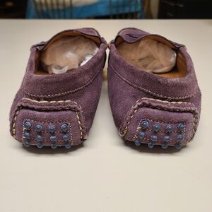 Peter Millar Jefferson moccasin driving loafers. Burgundy suede upper with embossed logo and rubber soles. Size 11 with light surface wear but otherwise in great used condition.