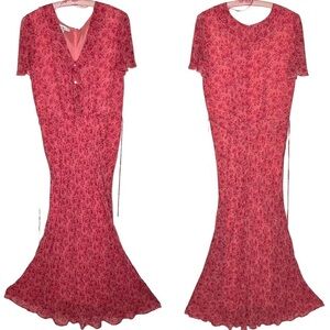 David Warren NY Ditsy Floral Ruffles Long Maxi Dress Ruffles Size 12 Dusty Rose