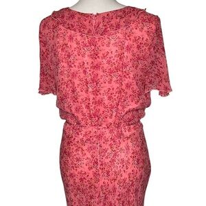 David Warren New York Womens Rose Pink Sheath Maxi Dress Size 12 Mini Floral Print Matching Belt