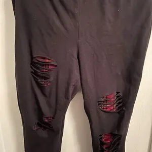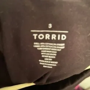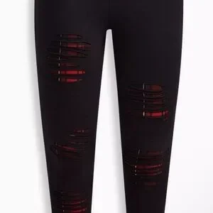 NWOT . These Torrid jeggings feature a sleek black design with edgy distressed detailing, offering a modern and stylish look. The form-fitting silhouette ensures a flattering fit, while the strategically placed rips add a touch of punk-rock flair. Perfect for making a bold fashion statement.