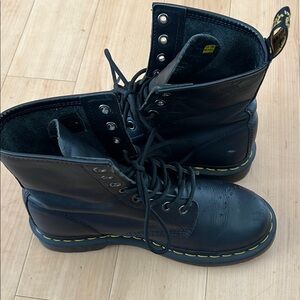 Dr. Martens Black and Yellow Combat Boots with Chunky Sole