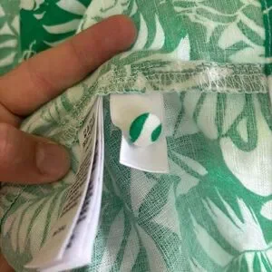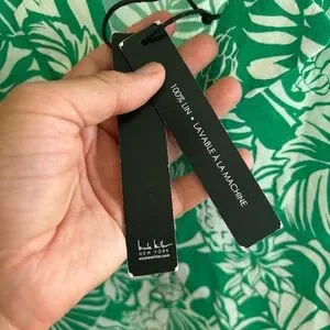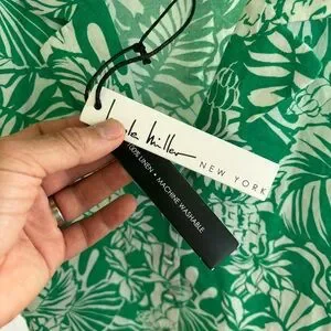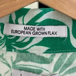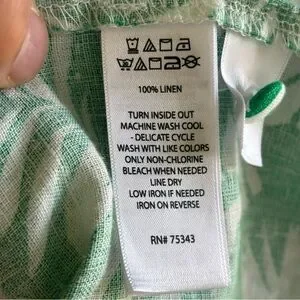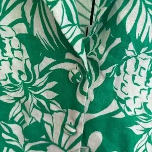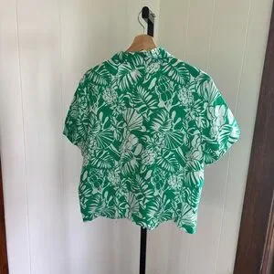 NWT Nicole Miller Women Med Preppy Linen Green Cropped Hawaiian Button Up Shirt