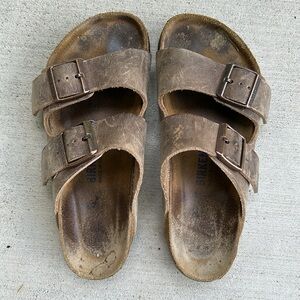 BIRKENSTOCK Arizona Brown Leather Soft Footbed in size 37