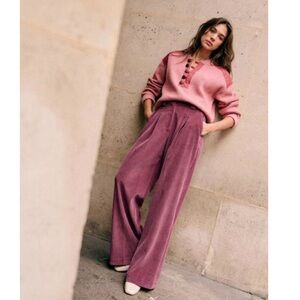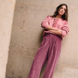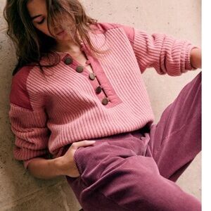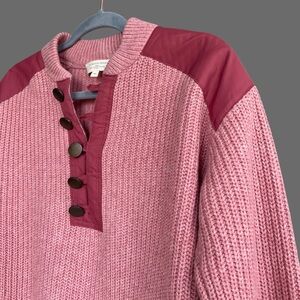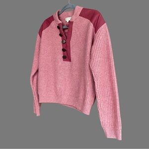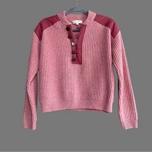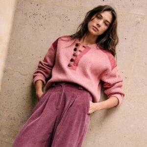 SEZANE Pink Wool Cotton Knit Quarter Button Pullover Sweater Pull Ewen Jumper