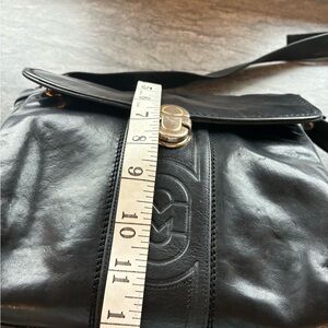 Beautiful thick leather. Very high quality bag with tons of pockets. Hardware had a bit of wear, but overall the bag is in great condition.