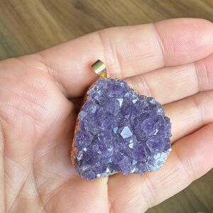 This stunning pendant features a vibrant Amethyst purple gemstone set in a luxurious gold tone frame. Perfect for adding a touch of elegance to any outfit.