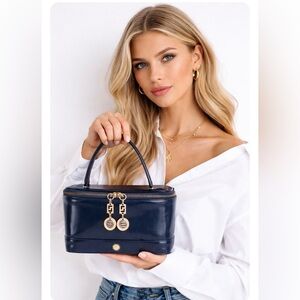 This Versace toiletry bag showcases a sophisticated black and gold color palette, perfect for organizing your beauty essentials. Crafted with high-quality materials, it features elegant gold-tone hardware that adds a touch of luxury to its sleek design. NWOT