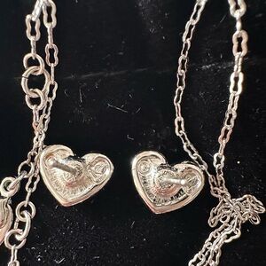 This exquisite Swarovski necklace features a silver-toned chain with a heart-shaped pendant adorned with sparkling crystals. The open design of the heart adds a touch of elegance, making it a timeless piece for any occasion. The heart pendant is missing a few of the crystals stones, but you cannot notice it unless you zoom in