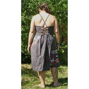 Handmade Hemp Organic Cotton Dress Knee LengthEmbroidered Boho Lagenlook Woodsy