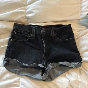 Levi's Black Jean Shorts with Frayed Hem