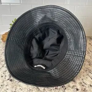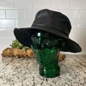 Stylish black leather bucket hat made with vegan leather. Practically new!