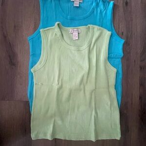 Dressbarn Blue and Green Ribbed Sleeveless Sweater tanks