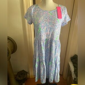 New with tags stunning floral/tiger dress. The blue and green hues create a refreshing look, perfect for any occasion. Enjoy comfort and style in one beautiful piece.