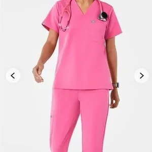 Experience the perfect blend of comfort and style with Figs' vibrant pink track pants joggers and top. Designed for versatility, these joggers feature a relaxed fit and an elastic waistband, making them ideal for healthcare setting in style. The eye-catching color adds a bold touch to your wardrobe, ensuring you stand out in any setting.