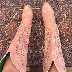 Step out in style with these chic pink western-style boots. Perfect for adding a pop of color to any outfit.