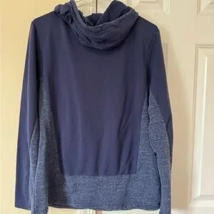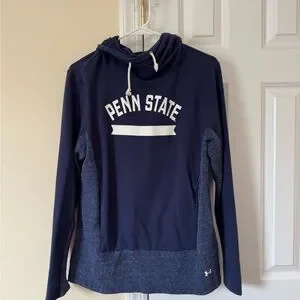 Navy hoodie with Penn State logo. Features gray accents and drawstring hood.