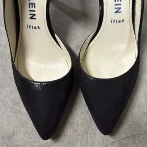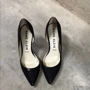 These sleek black pumps from Anne Klein feature a classic pointed-toe design and a smooth finish, offering a timeless and professional look. The low-cut vamp adds elegance, while the light-colored lining ensures comfort with every step.