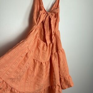 Orange Sleeveless Ruffle Tiered Open Back Bow Tie Sun Cami Dress Size M