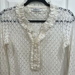 Ann Fontaine eyelet, long sleeve, luxe knit top size 40