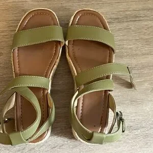 Chic sandals with green straps and brown sole. Ideal for everyday wear. Only worn a few times