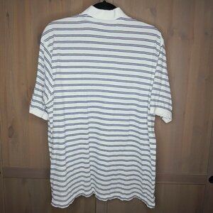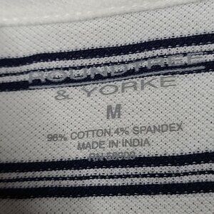 Roundtree & Yorke Polo Shirt Medium Mens White Navy Striped Short Sleeve Stretch