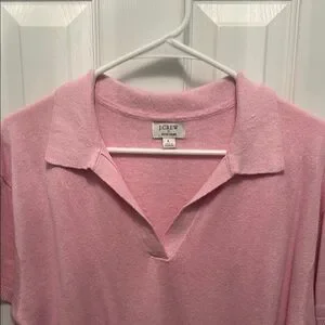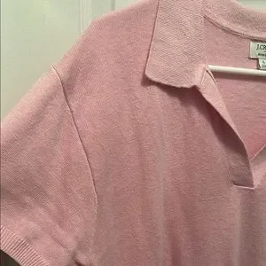 This J. Crew pink short sleeve polo-style sweater is a vibrant addition to your wardrobe, offering a comfortable fit and a classic design. Very light weight and perfect for everyday wear. The pink hue adds a pop of color to any outfit, making it a versatile choice for casual occasions.
