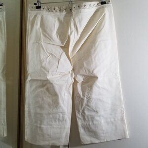 BCBG brand culotte pants in white, size 2. Cute waist, no pockets, found one small stain, no rips. Measurements are estimates