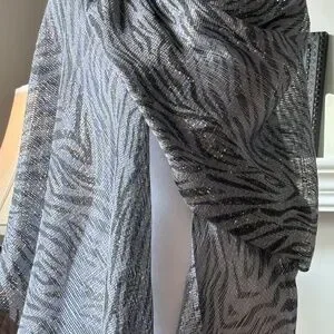 Zebra Print Metallic Mesh Shimmery Shawl with Fringe
