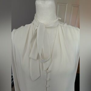 White House Black Market Cream Long Sleeve Tie Front Blouse
