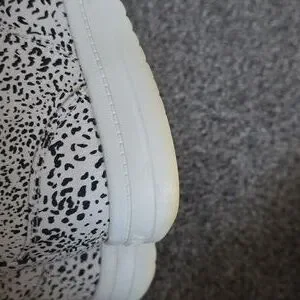 The shoes show some yellowing, please refer to pics, the shoes have some signs of wear.