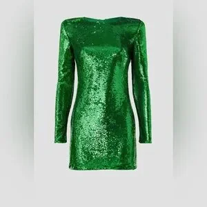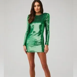 Long sleeve emerald sequin ‘Alessia’ mini dress with shoulder pads. This is a super cute dress, only wore it once for a birthday and it no longer fits me. Size US 12.
