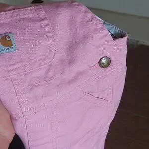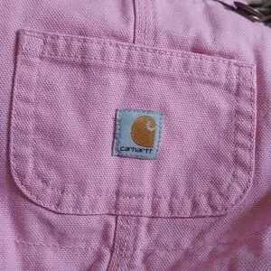 These Carhartt overalls feature a soft pink hue, crafted from durable fabric with a classic bib front design. Ideal for adding a playful touch to any wardrobe while maintaining a timeless workwear aesthetic; great used condition; no flaws; adorable! Last shot best depicts color